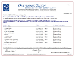 KOSHER certification, also known as Jewish certification, refers to the certification of food, auxiliary materials, and additives according to Jewish kashrut.