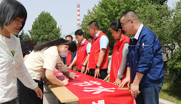 活动期间,公司组织员工在“惜水、爱水、节水,从我做起”横幅上郑重签名,督导每位员工承担起节水的责任;在厂区显著位置悬挂“深入贯彻落实《节约用水条例》”和“加快管网更新改造,降低供水管网漏洞”的横幅,提醒每位员工节水的紧迫性和重要性;组织人员开展管线的巡查和维护,确保生产生活用水得到充分利用。
